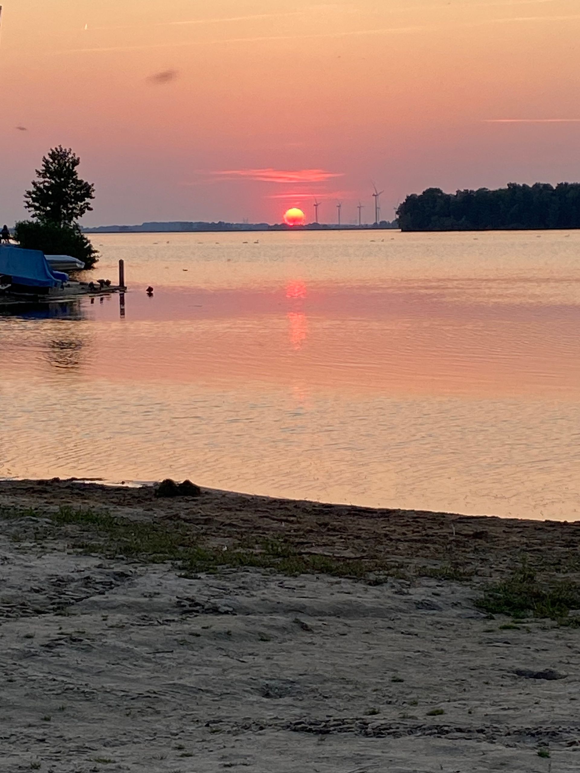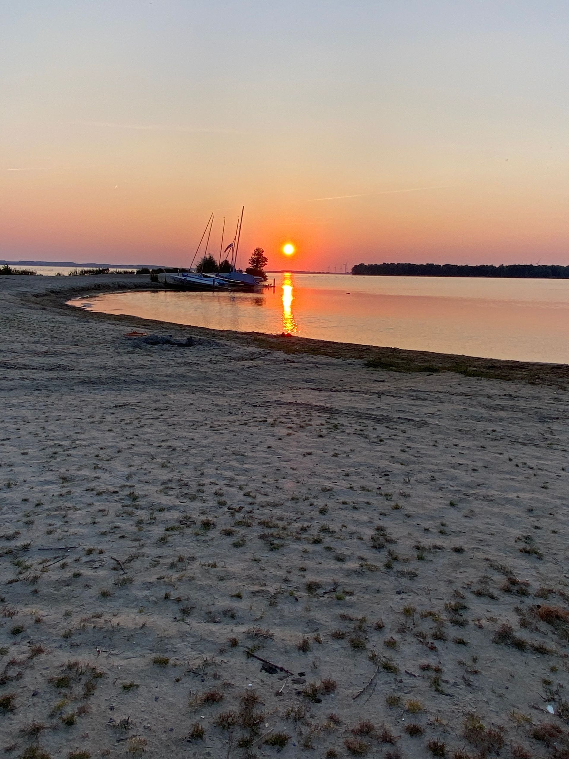 Ebener sandiger Boden. Blumen. Weiden. Wasser. Boote. Genuss. Bewegung.